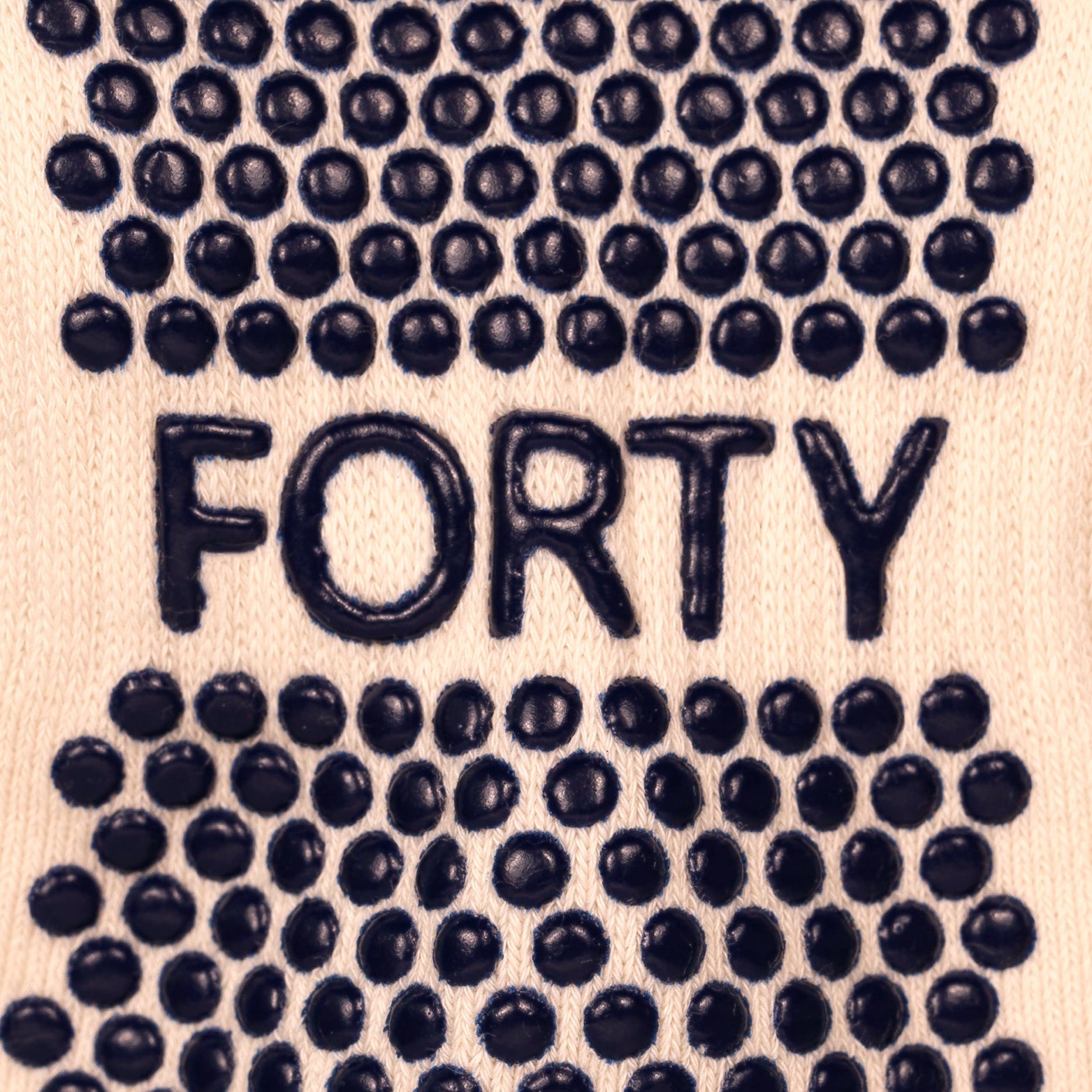Our grip socks are made of premium blend of cotton, polyester, and spandex that hug your feet and offer comfort, support, and cuteness during your Pilates, Yoga, or Barre session. Get up and get into FORTY Grip Socks.